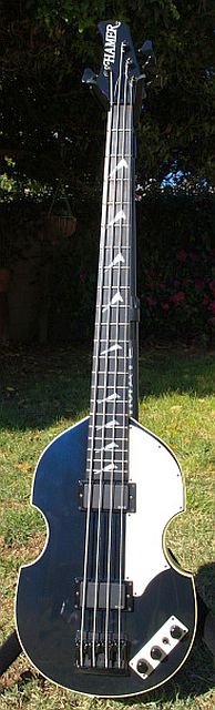 | notes: A limited number of longscale violin shaped basses with solid body, 3+1 headstock, and EMG humbuckers were built by Hamer in the late eighties. Only a few number were made in different finishes, the body is said to be shaped from the vintage Klira violin bass. Additional info and most pics used by kind permission of Jon Maye, NY | |||||||
